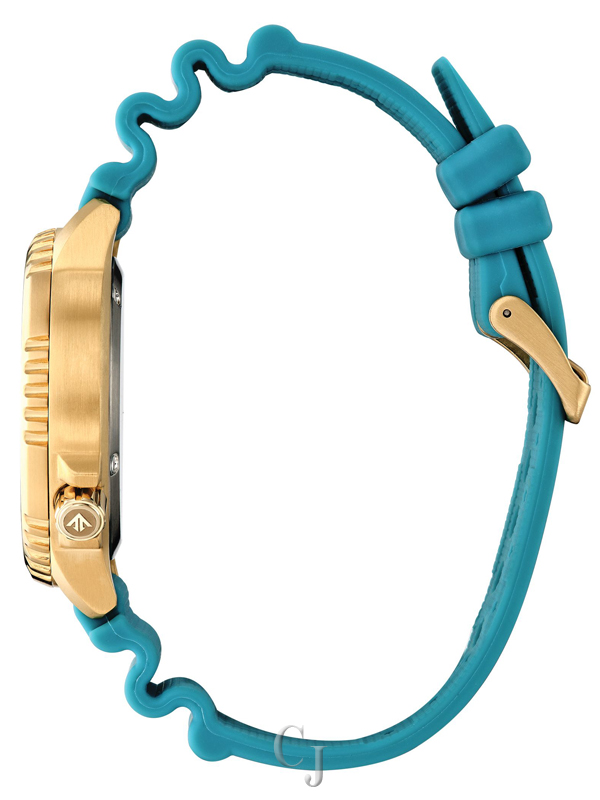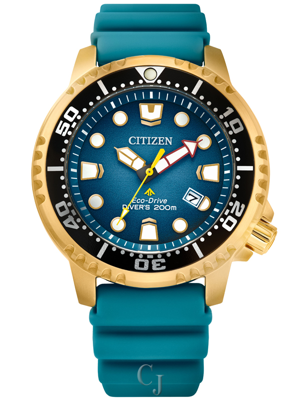 Explore the deepest depths with the latest Promaster Dive in a stylish new color. This must-have diving watch vibrantly features a gold-tone stainless steel case, a turquoise 3-hand dial with date function, and luminous hands and markers. The durable, matching turquoise polyurethane strap with buckle closure completes the look for a comfortable fit. Featuring our sustainable Eco-Drive technology powered by any light that never needs a battery, you’ll wear this high-performance timepiece in high style from adventures on land to the deep blue sea. ISO compliant and water resistant to 200 meters. Caliber E168.