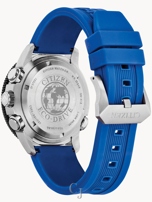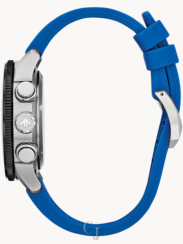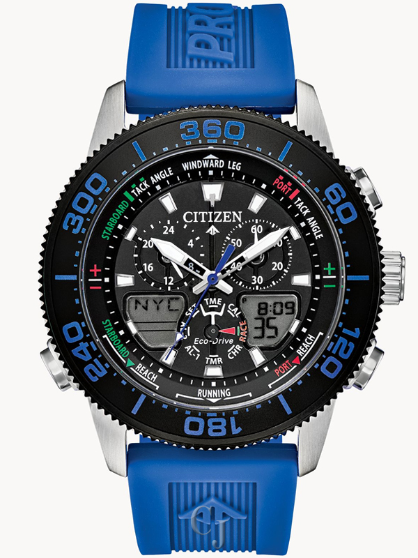 For avid marine sportsmen who value style as much as function, Citizen’s Promaster Sailhawk with Eco-Drive technology is the perfect combination of the two. With a blue polyurethane strap and numbering detail, offset with a stainless steel case, black aluminum bezel and dial, this watch isn’t blending into the background. And with features such as a yacht racing timer, a 99-minute countdown timer, two separate alarms, split lap times, the ability to show the time in 30 cities worldwide, and water resistance up to 200 meters, there is no water-based activity this timepiece can’t handle with ease.