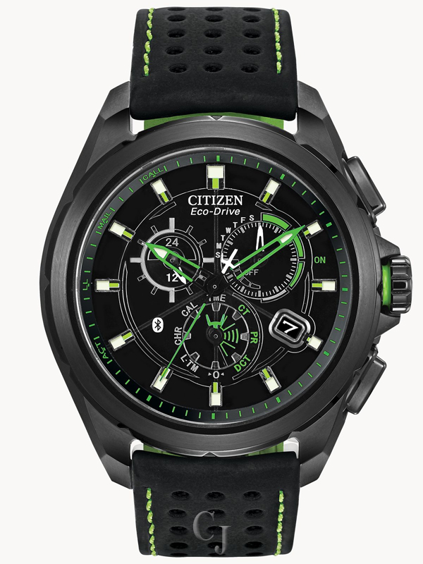 Both smart and good looking, the Citizen Proximity, features perpetual calendar chronograph with second time zone, 12/24 hour time, power reserve and sporty leather strap with a nylon backing. This timepiece is Bluetooth 4.0 compatible and just like the watch this low energy Bluetooth is powered by Eco-Drive technology. Through the Bluetooth 4.0 connection with your iPhone®, you can be alerted to incoming calls, emails, messages, reminders, and alerts. The free of charge Proximity App is available from the Apple® App Store on your compatible iPhone® or from iTunes on your computer.
