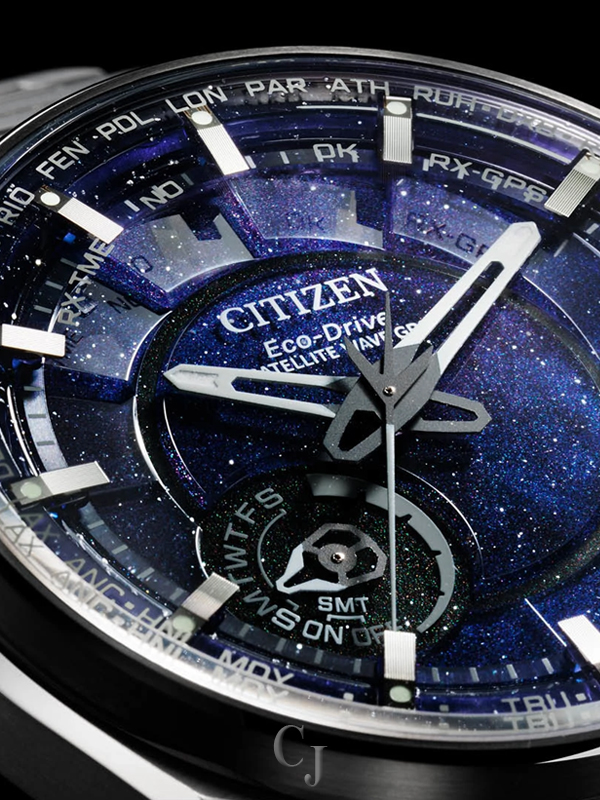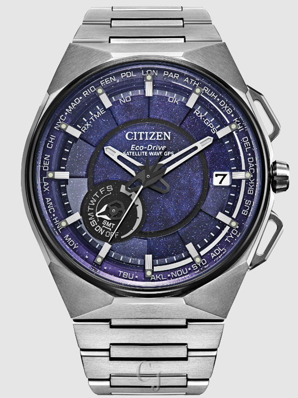 Marking ten years since the launch of the original F100 models in 2014, Citizen now introduces the Satellite Wave. Inspired by artificial satellites and the infinite expanse of space, the new watch matches future-cool styles with the world’s fastest timekeeping signal reception speed from GPS navigation. A 45.4mm Super Titanium™ case and bracelet solidify the distinct integrated construction of the timepiece, while a duo of pushers and a conical crown provide a sporty and avant-garde touch. A world time bezel frames the cosmos-inspired dial, with black and applied silver-tone accents adding dimensionality alongside the utility of the watch’s feature-packed sub-dial and date window.