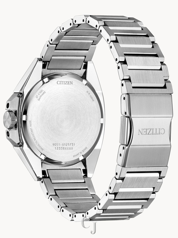 Redefining the power of a sport watch with infinite possibilities. Introducing the Citizen Series 8 mechanical collection of modern timepieces for a modern world. The sporty designs with high-performance automatic movements make a powerful impression. Stand out in style with the refined, signature 831 mechanical watch that features a superior accuracy of -10 to +20 per day in a sleek, silver-tone stainless case and bracelet in both hairline and mirror finishes, a glossy black dial with luminous hands and markers, and an anti-reflective sapphire crystal. This sleek, Citizen automatic men’s sport watch also features enhanced magnetic resistance to protect the movement against external magnetic fields, a 42-hour power reserve and water resistance to 100 meters. Caliber number 9051.