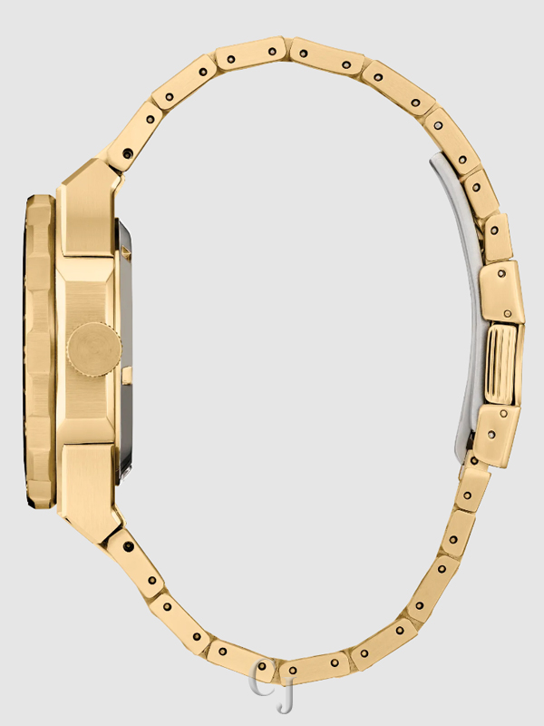 A tapered and integrated two-tone H-link bracelet secures the watch to the wrist, with its design following the aesthetic of the case via the use of polished and brushed facets. Beneath a sapphire crystal, the watch’s textured black dial features applied rose gold-tone indices and lume-filled hands, each working together to offer incredible legibility alongside a utility-driven 3 o’clock date window; an orange-tipped hand assists in keeping track of multiple time zones.