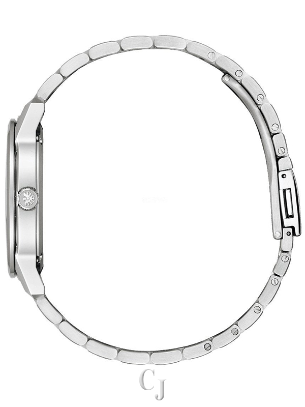 Fine lines radiating from the centre of the silver dial in a sunburst pattern give the watch character, authority and style. The beautiful mirror finishes and the sense of weightiness express stainless steel’s unique appeal as a material and endow this timepiece with real presence.