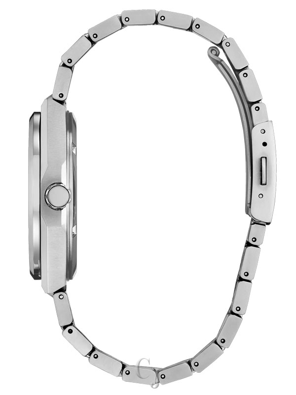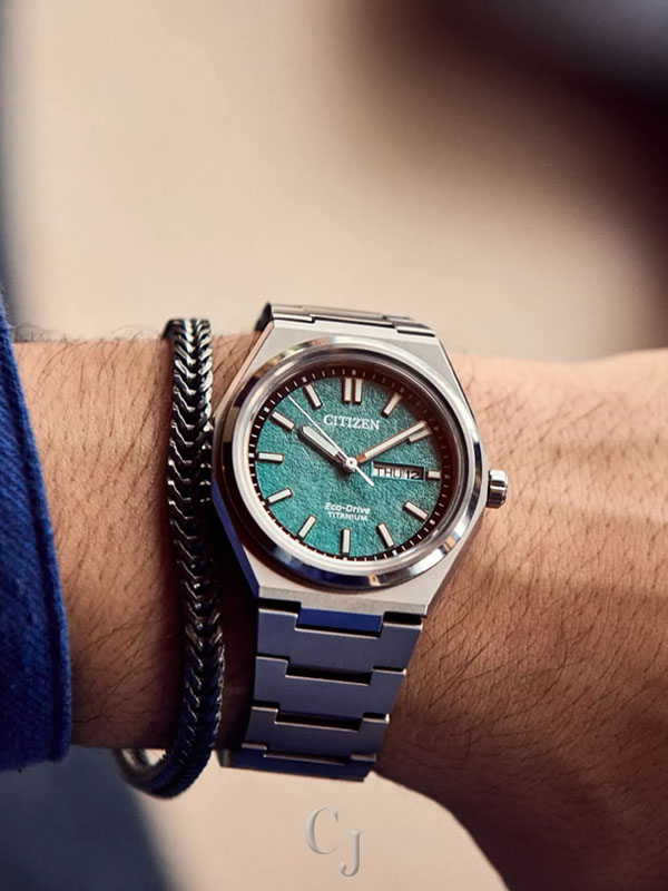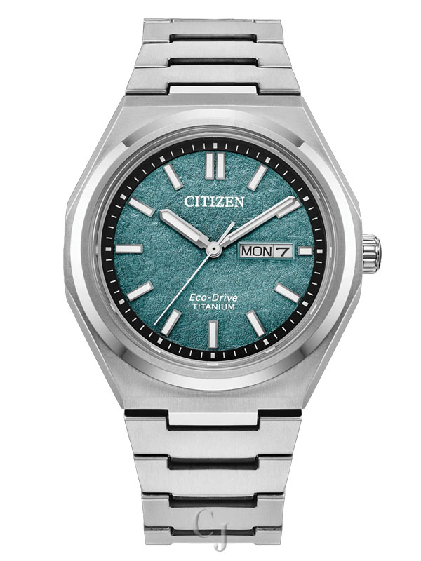 Pairing classic proportions and innovative technology with a distinctly modern style, we present our new Integrated Super Titanium™ series. Made with our proprietary material, Super Titanium™, which is five times harder and 40% lighter than stainless steel and is scratch- and rust-resistant, this sporty timepiece features a 39mm silver-tone Super Titanium™ case that is elevated with finely brushed and polished finishing while being secured to the wrist with an integrated matching bracelet. On the dial, a textured blue color is accented with an outer minute ring in black, with silver-tone details and luminous hands and markers. A combined day-date window at the 3 o’clock position adds daily utility and hints at the watch’s retro-style inspirations. Sustainably powered by any light with Eco-Drive technology and never needing a battery, this versatile watch is also water resistant to 100 meters. Caliber J800.