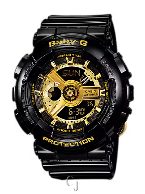 The BA110-1A black and gold digital watch also includes features like world time, a countdown timer, a stopwatch, and 5 daily alarms. Our women’s digital watch also has a full auto-calendar, which is pre-programmed until the year 2099. With its long battery life and reliable performance, this CASIO black and gold watch is perfect for those who want a feminine yet multifunctional watch. The side buttons are also made easy to press and are thus more practical.