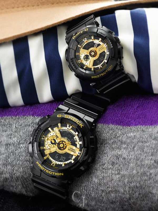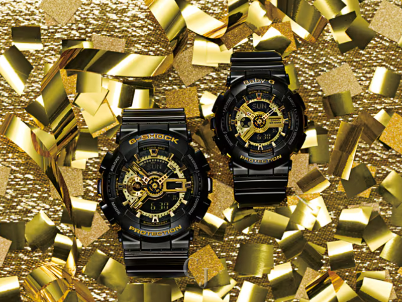 This black and gold watch is smaller and thinner to fit a feminine wrist while retaining the coolness of G-SHOCK. The three-dimensionally arranged indices are painted with a glittering, metallic coat for a refined texture. This gives the black digital watch a sharp and energetic impression.Â
