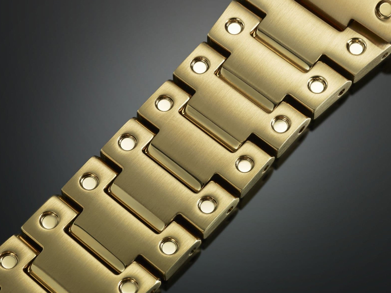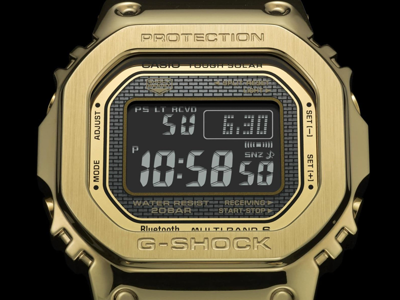 The Full Metal 5000 is a brand new, specially crafted all-metal timepiece. Inspired by the first G-SHOCK model, DW5000C, this upgraded original boasts a modern, lustrous, color way while maintaining a vintage aesthetic. The watch also incorporates one of the first and most iconic G-SHOCK case designs, featuring a vintage, square shape case & bezel with a brick pattern on the face and gorgeous gold color accent.