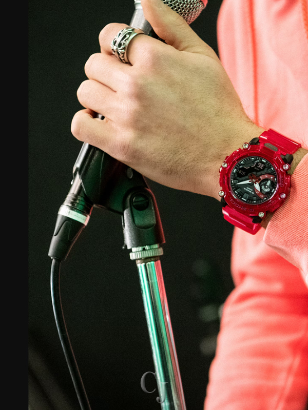 Inspired by a surge of sound flowing over a dance floor, these watches translate this vision into color and design for a stereophonic take on the sporty GA2200 featuring analog hands and digital display.