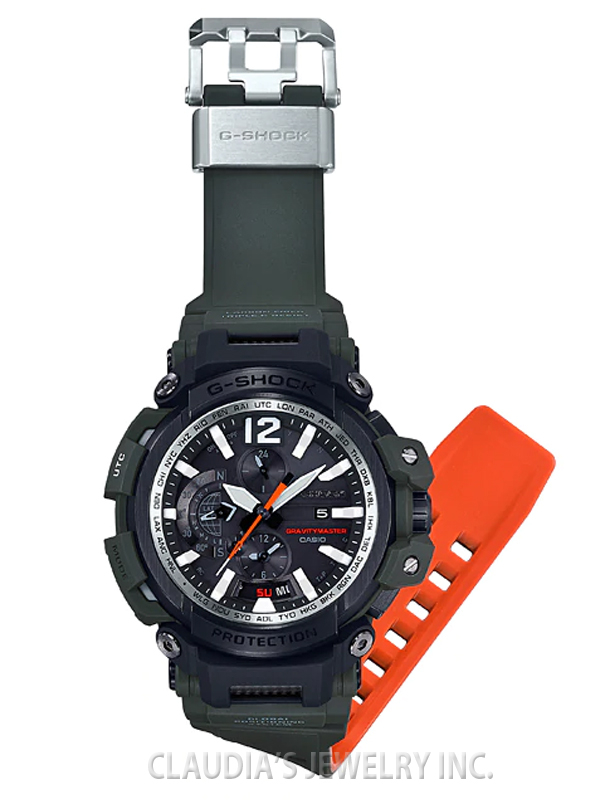 GPW2000 in Olive Drab, the latest addition to the MASTER Of G GRAVITYMASTER Series of timepieces with features and functions demanded by pilots. The base color is the olive green seen on flight jackets worn by pilots. The second hand and inside band surface are highlighted with orange, which can often be found on the inner lining of a flight jacket, which creates a look that is very fitting for GRAVITYMASTER Series timepieces.The GPW-2000 features GPS signal and time calibration signal reception for time correction, as well as Bluetooth® linking.These functions are specially selected to meet the needs of pilots who need to operate under tough conditions.