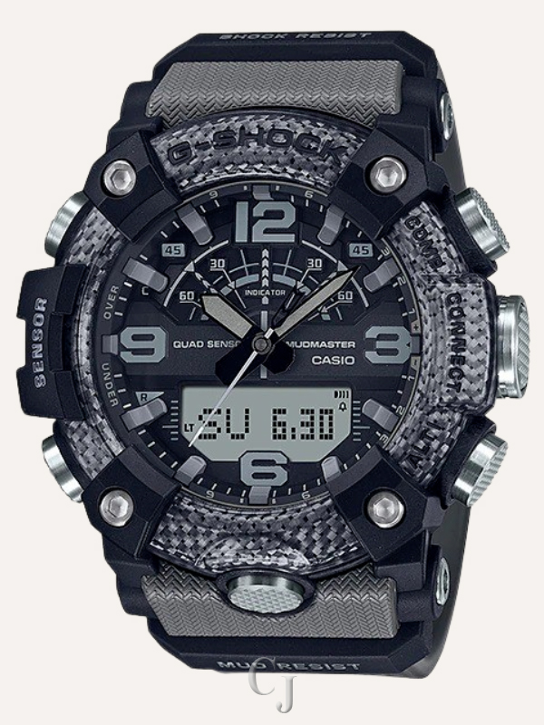 Or take on the harshest on-land terrain with the MUDMASTER GG-B100. Go totally off-road with this new watch in a two-tone, gray-on-black color scheme.