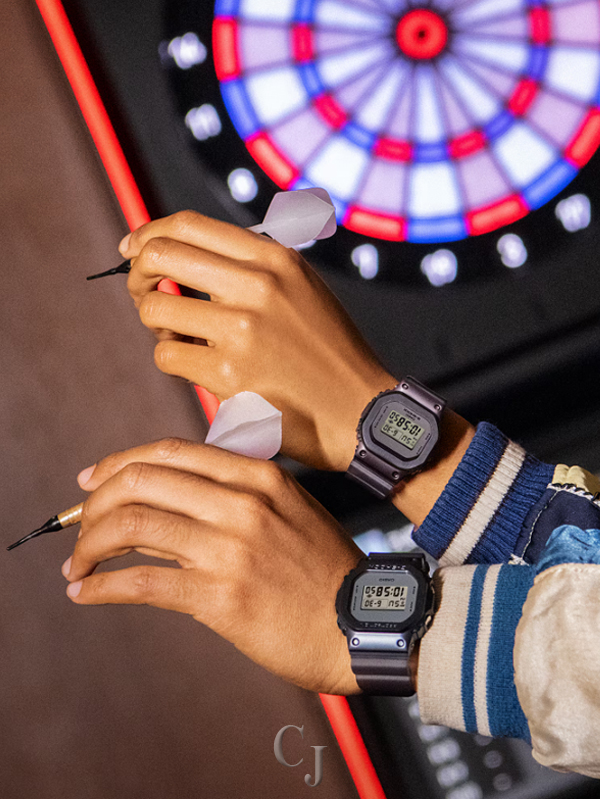 Step into a world of midnight fog with timepieces in shimmering sophisticated hues. Metal components are honed and finished in color ion plating for a rich matte feel, while band and case wear complementary color tones to add a touch of balanced contrast. Translucent bands in muted neutral shades fade to near colorlessness, evoking the ethereal quality of a night fog.