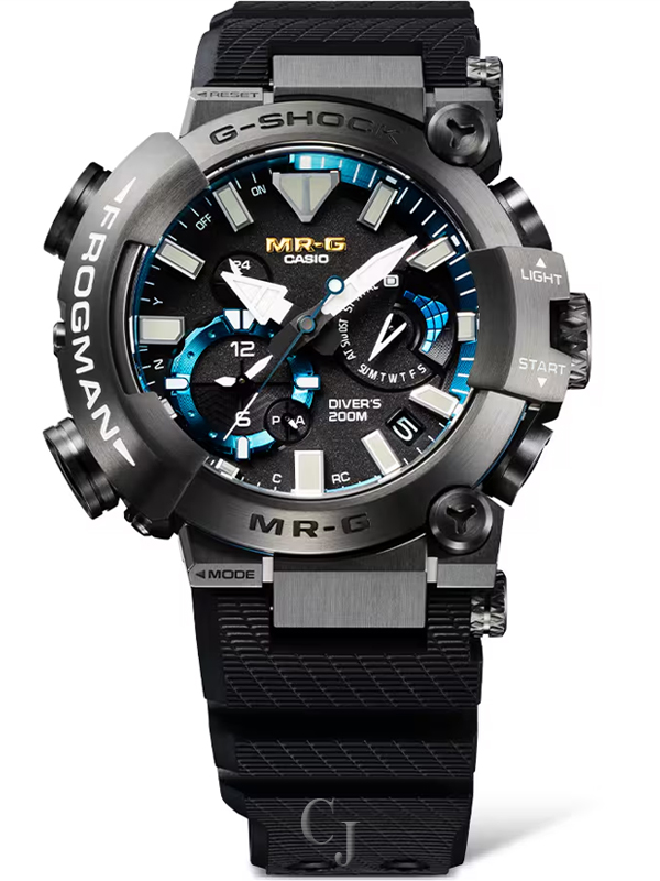 A premium, full-metal G-SHOCK MR-G timepiece for the sea — the titanium armor-clad, airtight MRGBF1000 with ISO 200-meter water resistance joins the FROGMAN family of full-fledged diver’s watches.