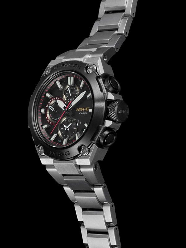 Introducing an elegantly beautiful new titanium model for the mid-size series of the G-SHOCK MR-G flagship lineup. Everything possible has been done to reflect the metal crafting aesthetics of armor, swords, and other Japanese arms, which have been symbols of power in Japan since