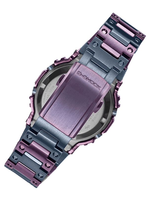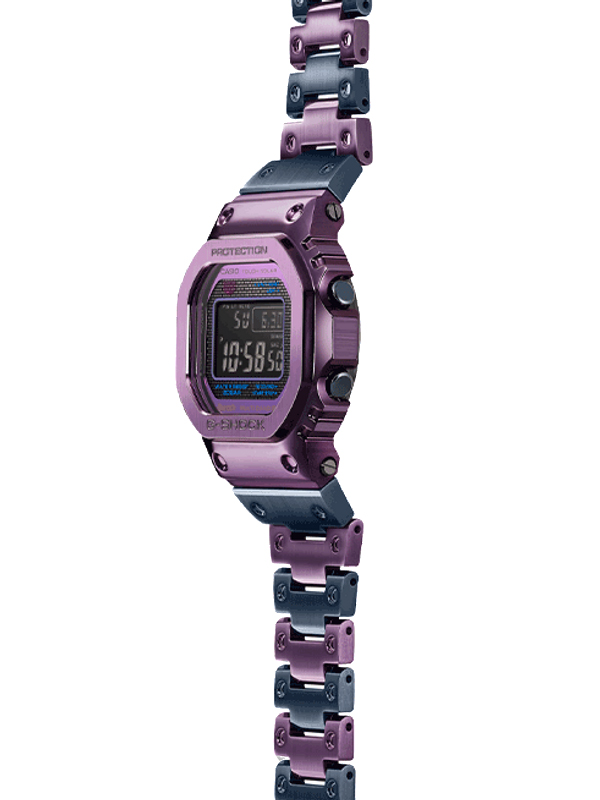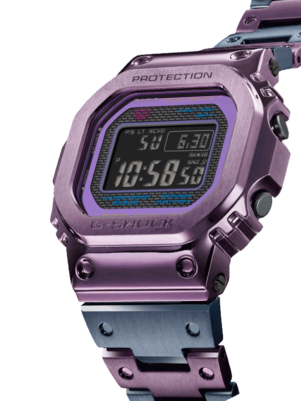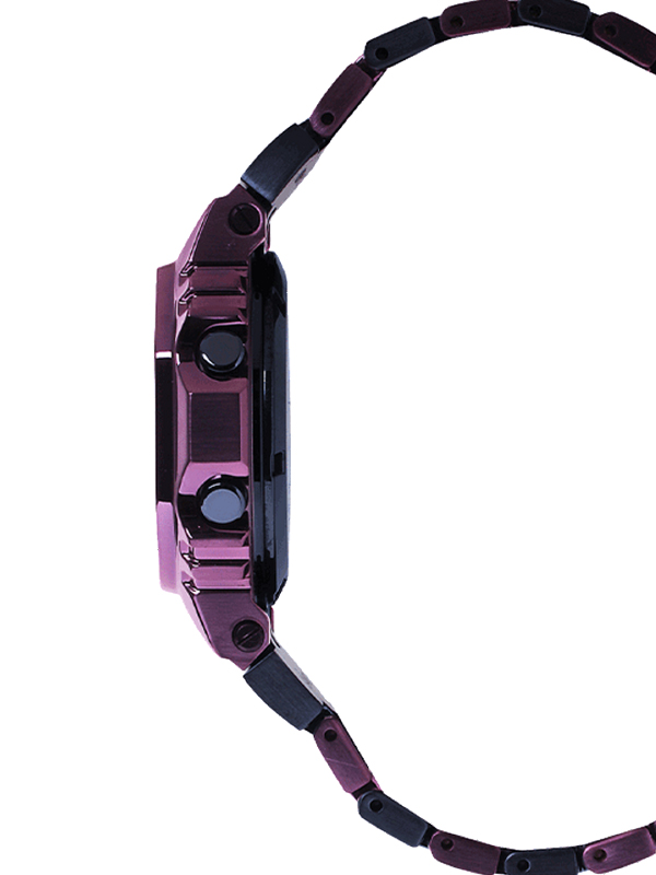 Welcome to a one-of-a-kind watch inspired by Tokyo twilight. Directly descended from the classic G-SHOCK DW-5000C, this special duotone edition is born of a revolution in color design.The iconic square face gets a new look with a stainless steel case in purple, the latest addition to Casio color ion plating. Alternating purple and blue-gray ion plating on the stainless steel watchband evokes the shades of the urban skyline at dusk. Add in purple accents on the dial combined with the negative mode LCD for a sophisticated, entirely original design.