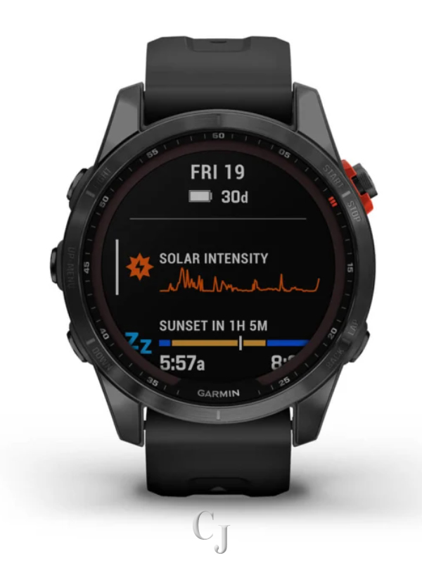 There are 7 days in a week. And the fēnix 7S Solar multisport GPS watch is built to go strong for all of them. It’s styled for smaller-sized wrists. And its Power Glass solar charging lens gives it the battery life to sustain a whole array of athletic and outdoor features. Use trusted button controls or the new touchscreen interface to access selections. Gain performance insights and metrics that help you manage your exertion and build stamina. Optimize recovery with 24/7 health and wellness monitoring of heart rate, respiration, stress, sleep and more (this device is intended to give an estimation of your activity and metrics; it is not a medical device). GPS and outdoor navigation sensors guide your outings off the beaten path. And to complement your tamer days, connected features include smart notifications when connected to a compatible smartphone, music storage and Garmin Pay contactless payments in supported countries and payment networks.