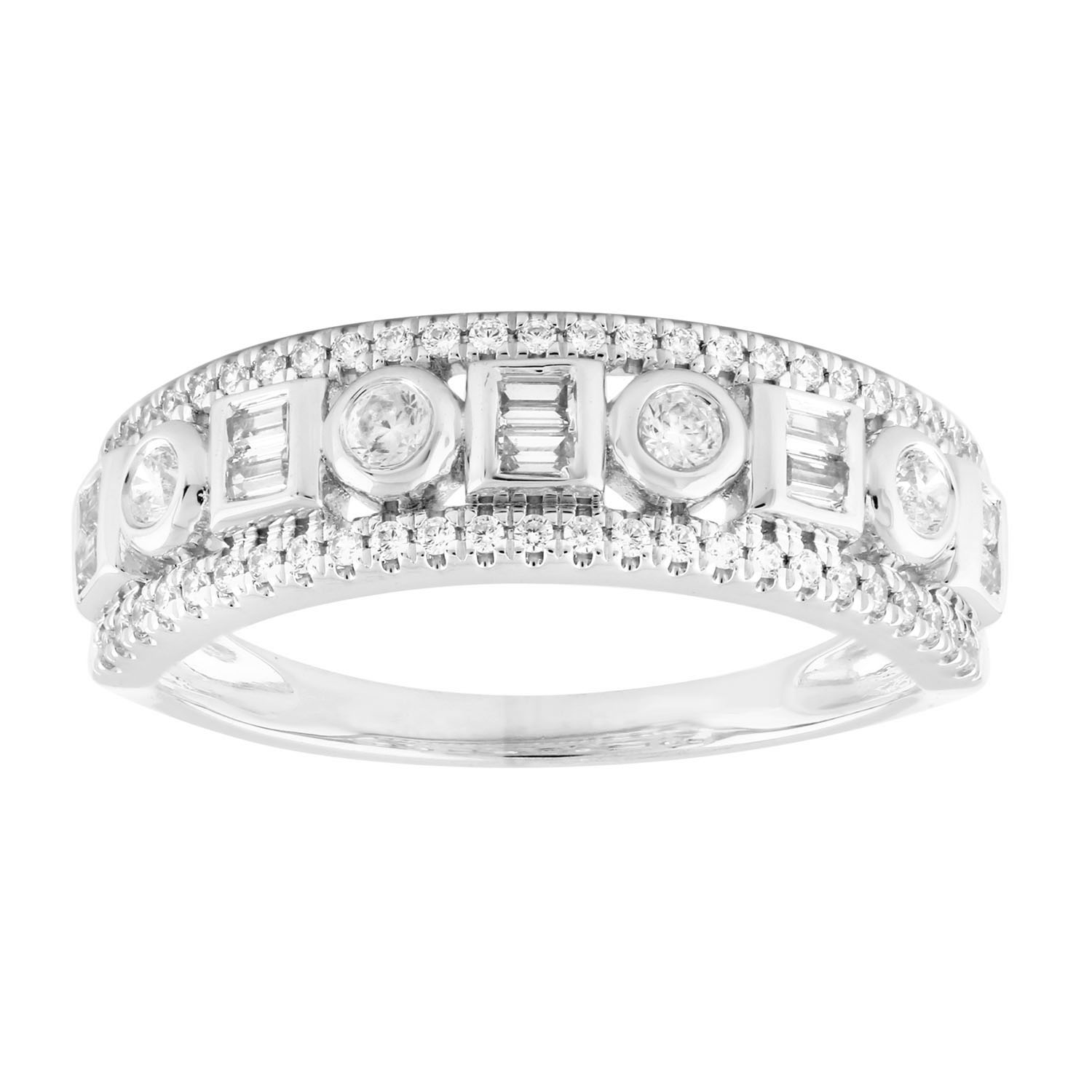 LADIES BAND 0.50CT ROUND/BAGUETTE DIAMOND 14K WHITE GOLD