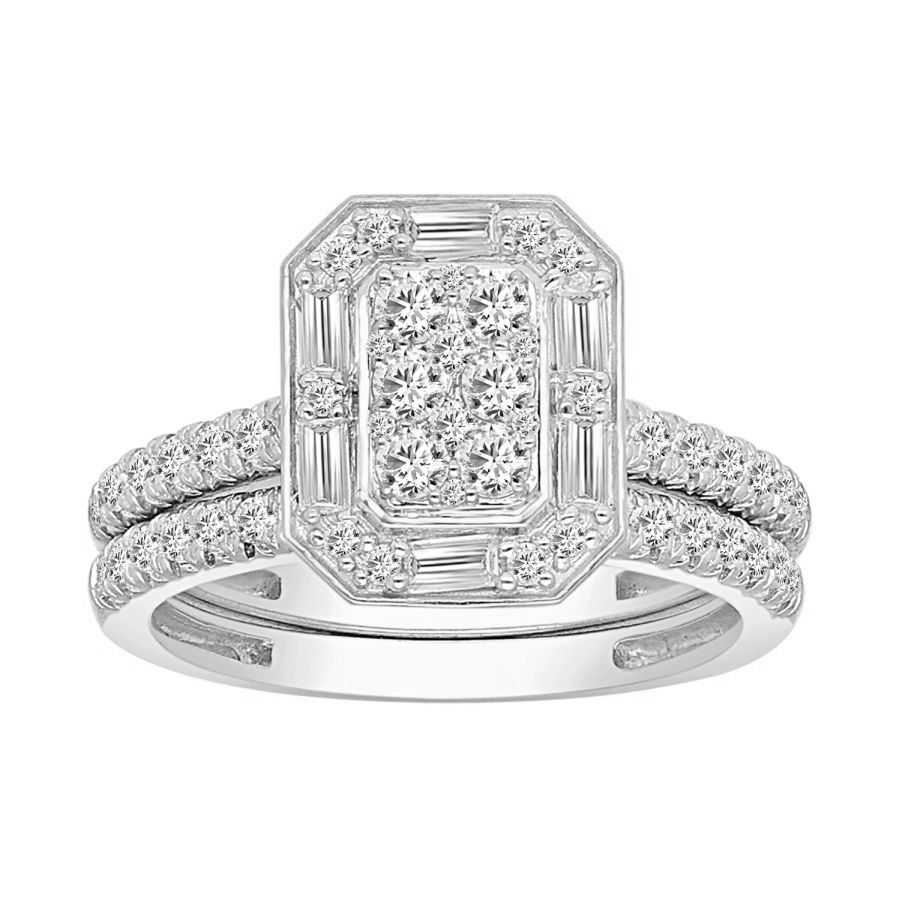LADIES BRIDAL SET 1.00CT ROUND/BAGUETTE DIAMOND 14K WHITE GOLD