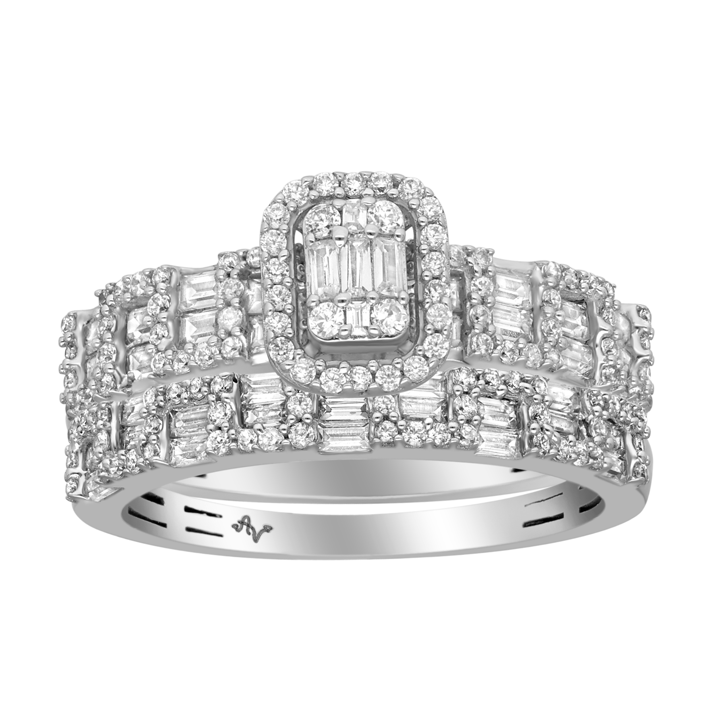 LADIES BRIDAL SET 1.00CT ROUND/BAGUETTE DIAMOND 14K WHITE GOLD