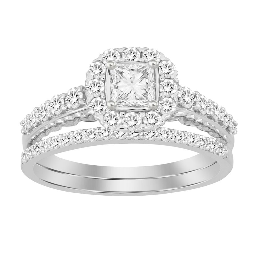 LADIES BRIDAL SET 1.00CT ROUND/PRINCESS DIAMOND 14K WHITE GOLD (CENTER STONE 0.33CT PRINCESS DIAMOND)