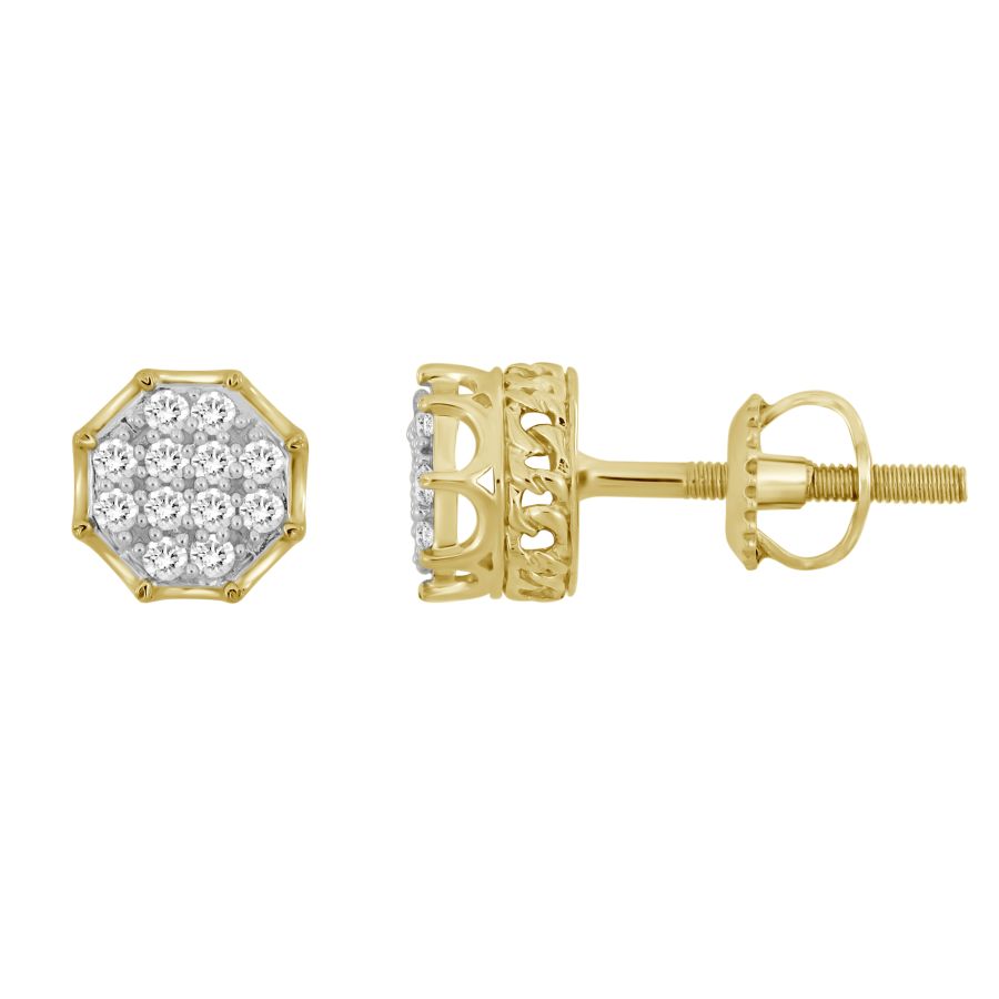 LADIES CUBAN EARRINGS 0.15CT ROUND DIAMOND 10K YELLOW GOLD
