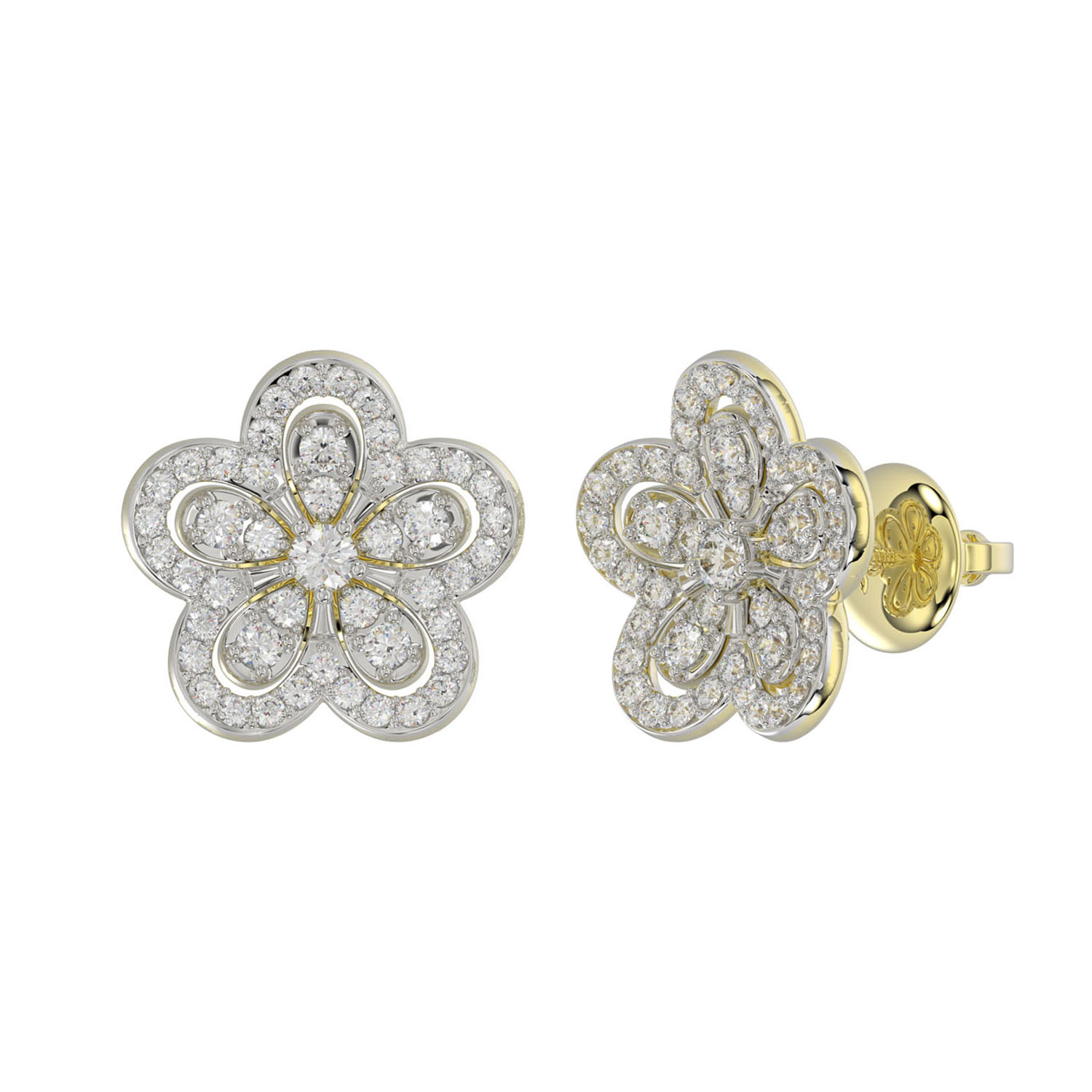 LADIES EARRINGS 0.50CT ROUND DIAMOND 14K YELLOW GOLD