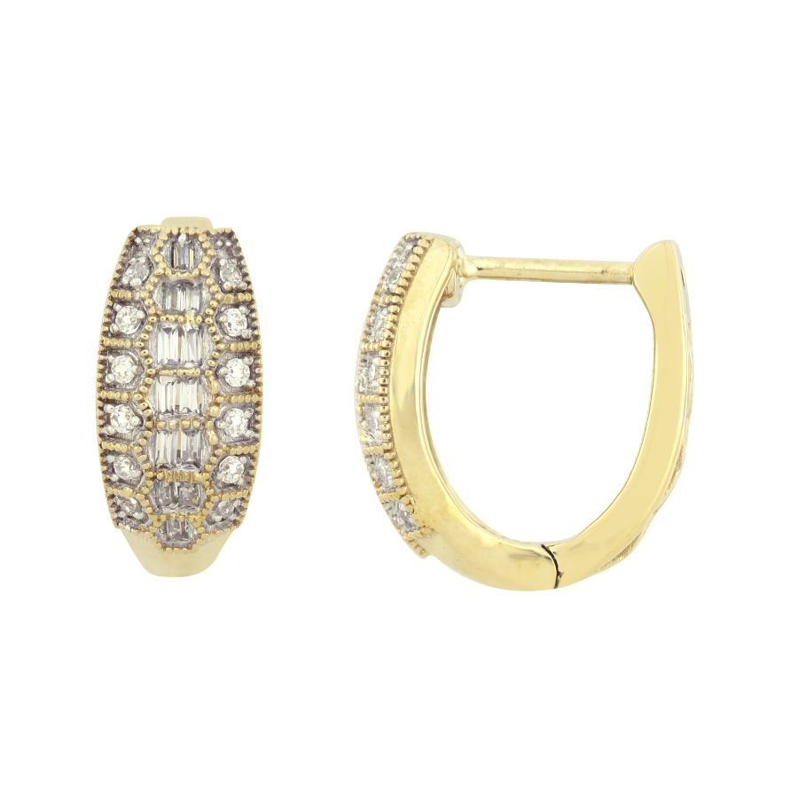 LADIES HOOP EARRINGS 0.50CT ROUND/BAGUETTE DIAMOND 10K YELLOW GOLD