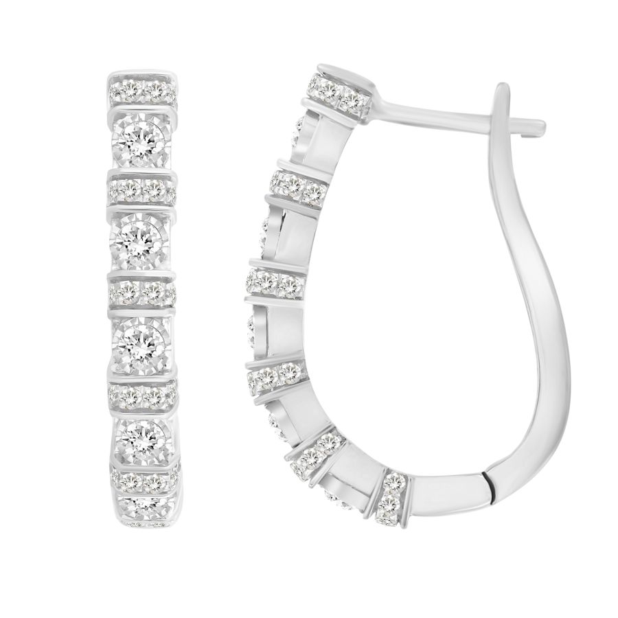 LADIES HOOP EARRINGS 0.50CT ROUND DIAMOND 10K WHITE GOLD
