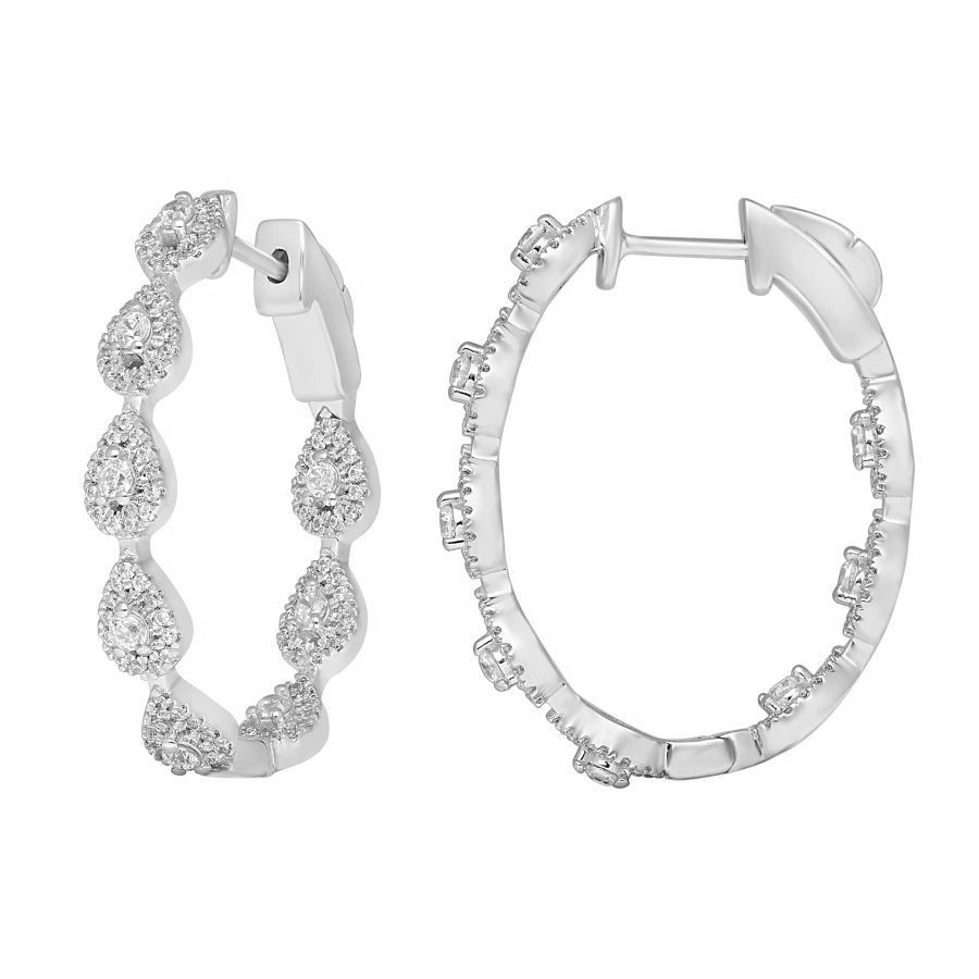 LADIES HOOP EARRINGS 1.00CT ROUND DIAMOND 14K WHITE GOLD
