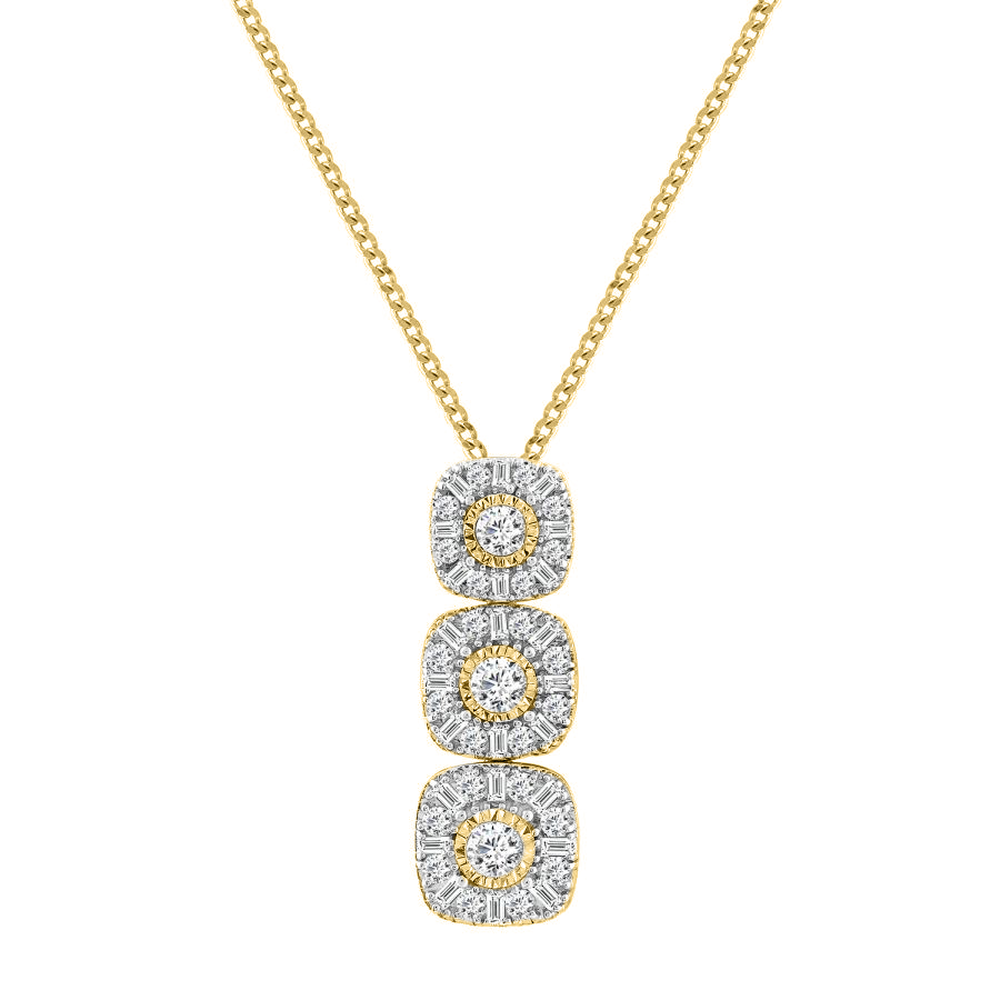 LADIES PENDANT WITH CHAIN 1.00CT ROUND/BAGUETTE DIAMOND 14K YELLOW GOLD (SI QUALITY)