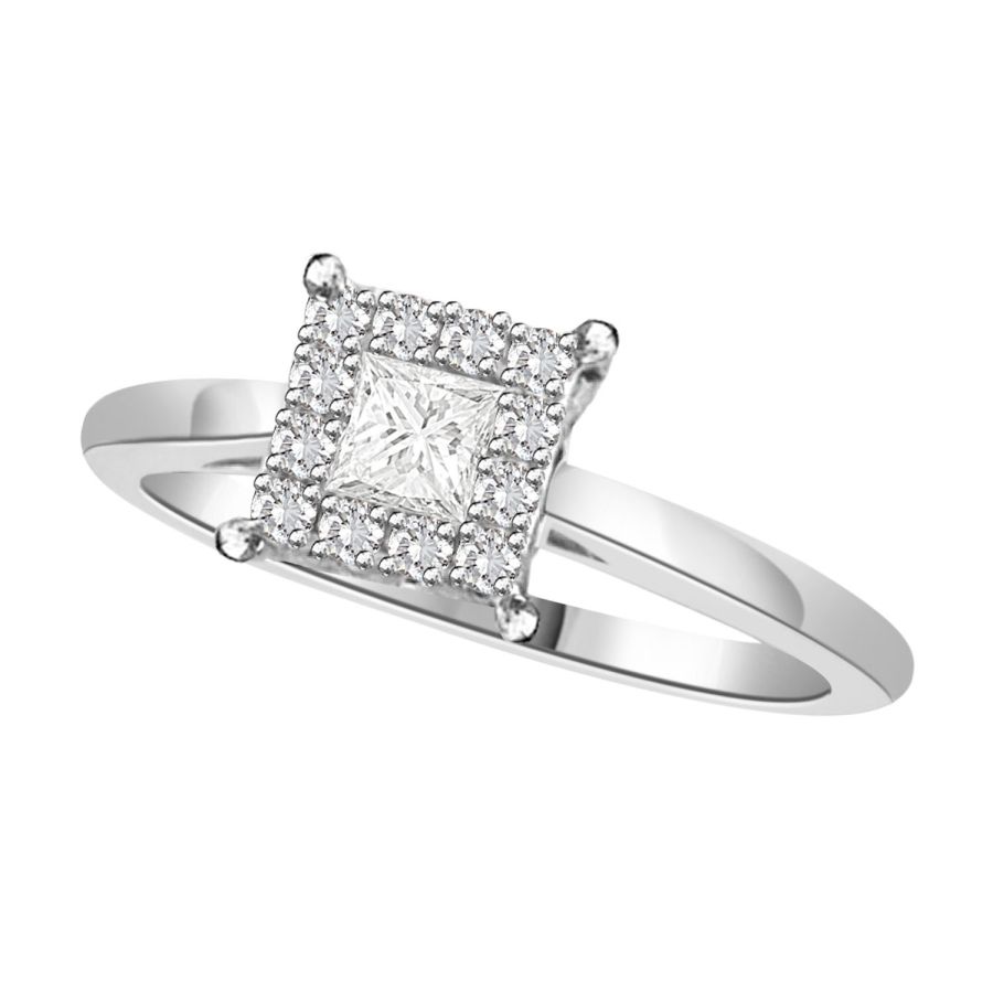LADIES RING 0.25CT ROUND/PRINCESS DIAMOND 14K WHITE GOLD (SI QUALITY)