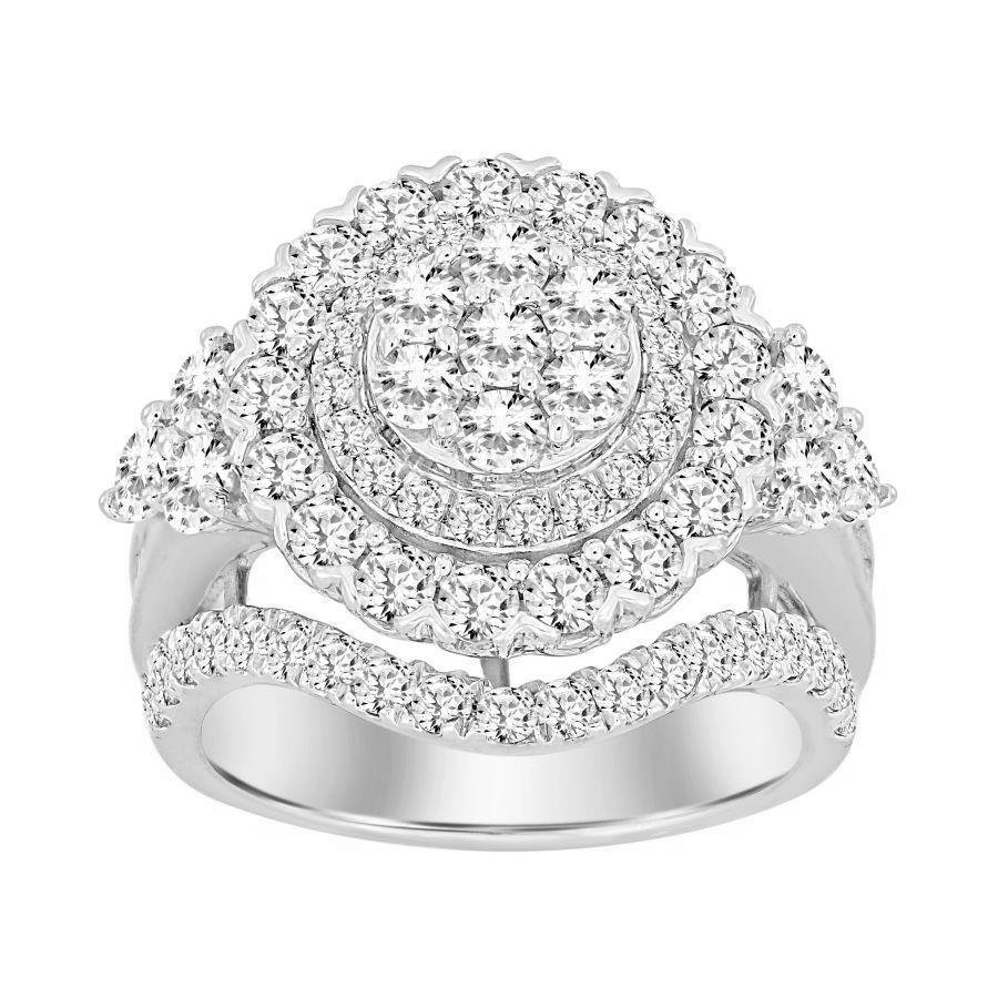 LADIES RING 3.00CT ROUND/BAGUETTE DIAMOND 10K WHITE GOLD