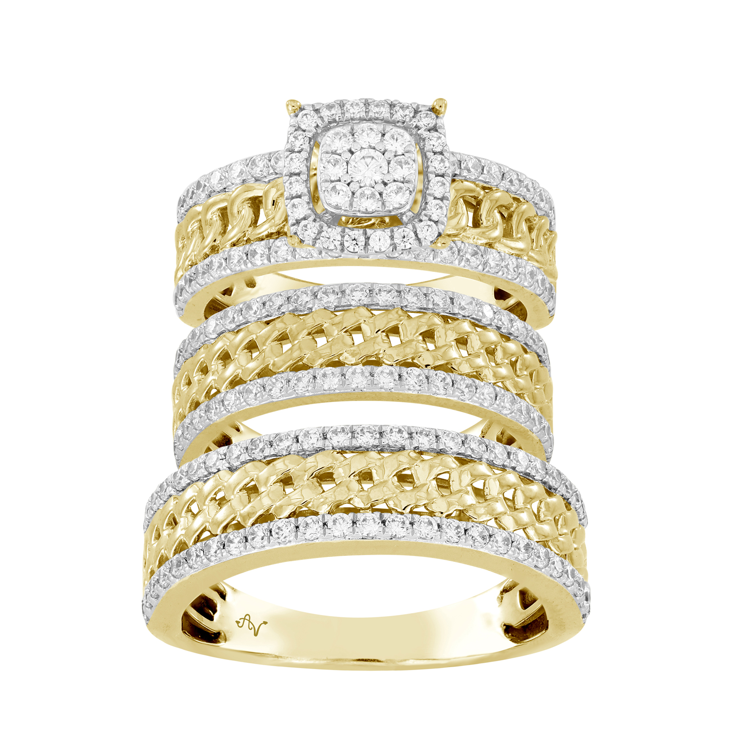 LADIES TRIO SET 1.50CT ROUND DIAMOND 10K YELLOW GOLD