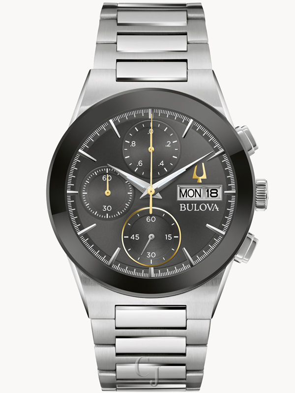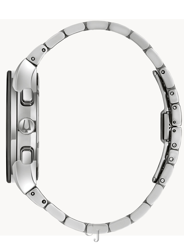 Form and function are blended flawlessly in the sophisticated chronograph watch from the Bulova Modern Millennia collection. This elegant timepiece is set in a silver-tone stainless steel case finished with the signature Modern metalized edge to edge crystal and features a 6 hand day/date chronograph movement, with subregisters to measure elapsed time, a minute dial, and an hour dial. The silver-tone stainless steel bracelet is fastened by a deployant buckle with pushers. This elegant, yet highly functional watch will appeal to your modern sense of style.