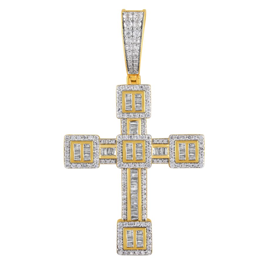 MEN’S PENDANT 2.00CT ROUND/BAGUETTE DIAMOND 10K YELLOW GOLD