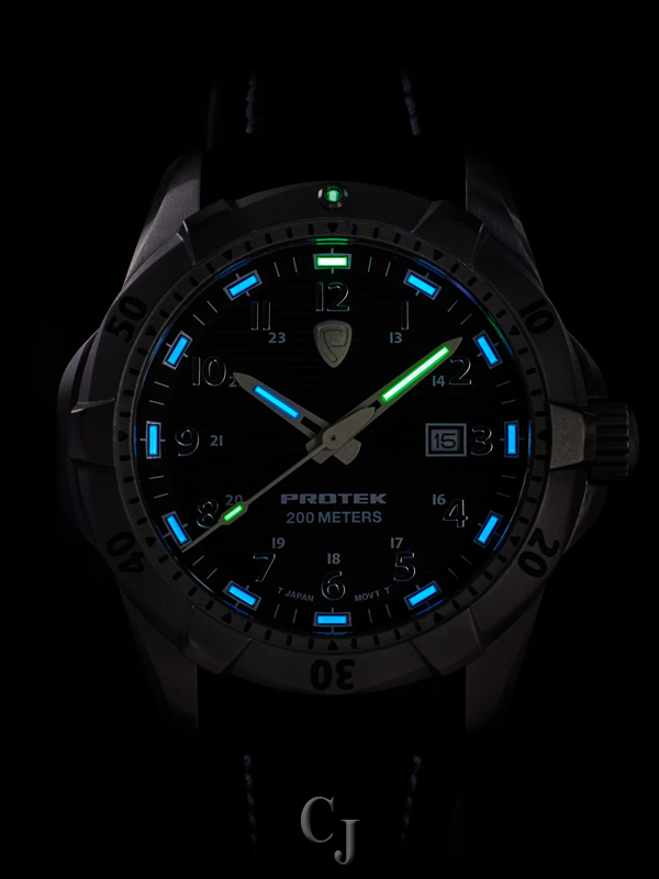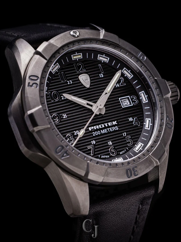 PROTEK DIVE SERIES 2000 BLACK DIAL W/ BLACK LEATHER STRAP WATCH PT2002