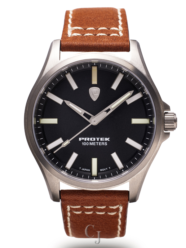 PROTEK FEILD SERIES 3001 BLACK DIAL W/ TAN LEATHER STRAP WATCH PT3001