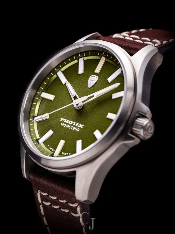 PROTEK FEILD SERIES 3005 GREEN DIAL W/ TAN LEATHER STRAP WATCH PT3005