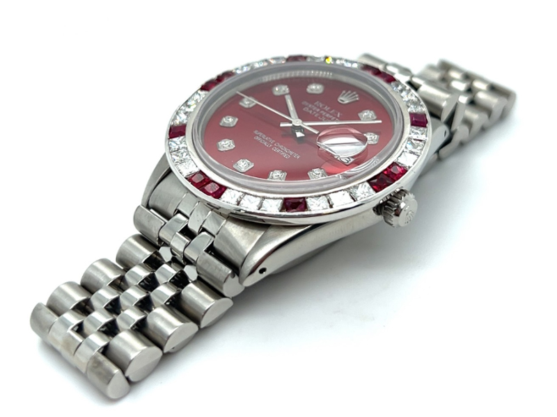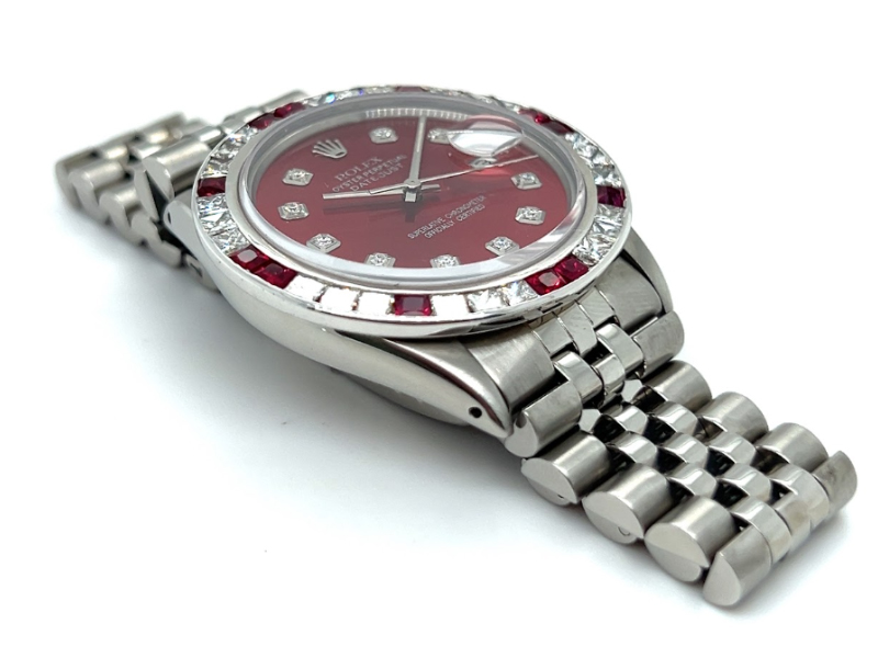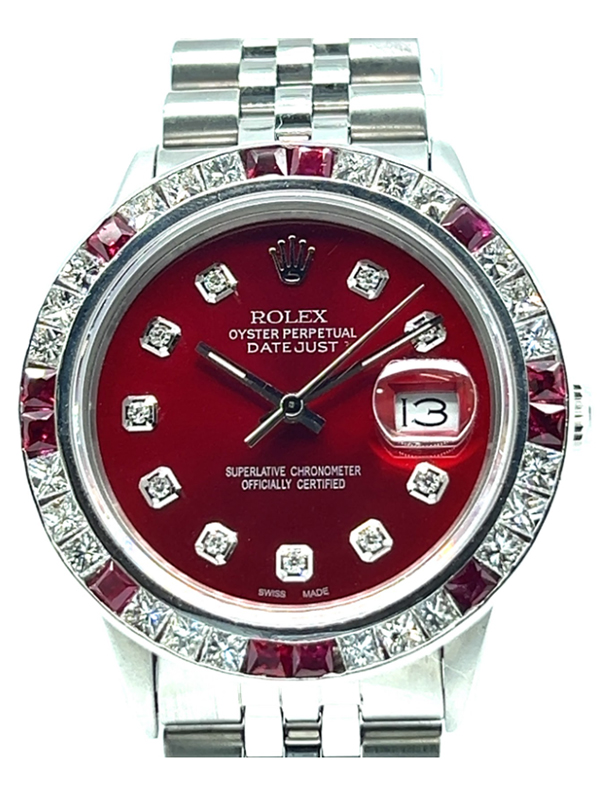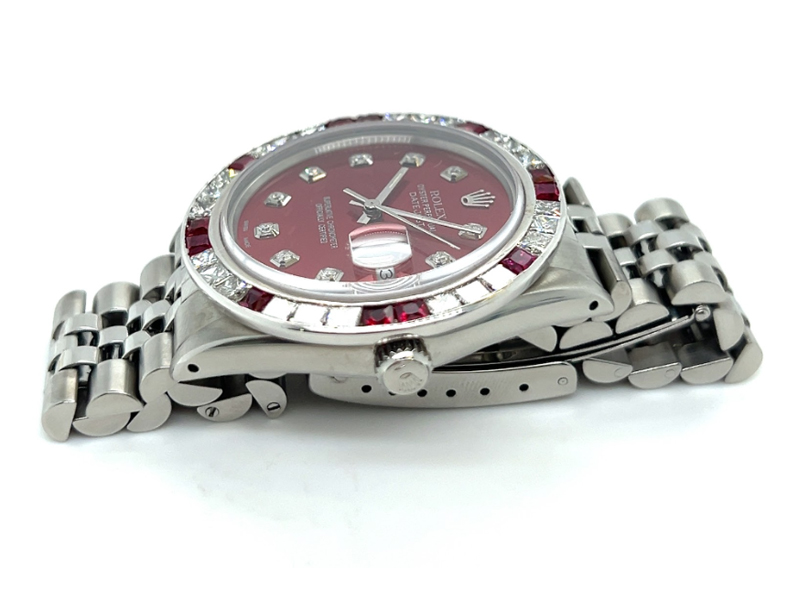 ROLEX DATEJUST 36MM CUSTOM DIAMOND/RUBY AND WHITE GOLD BEZEL JUBILEE BAND 16030