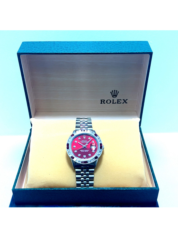 - Dial: Aftermarket Red Dial, Diamond hour markers