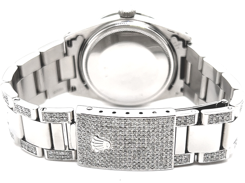 at 3 o’clock and an external cyclops, Oyster Bracelet Set With Custom Genuine Diamonds and Custom Diamond Bezel.
