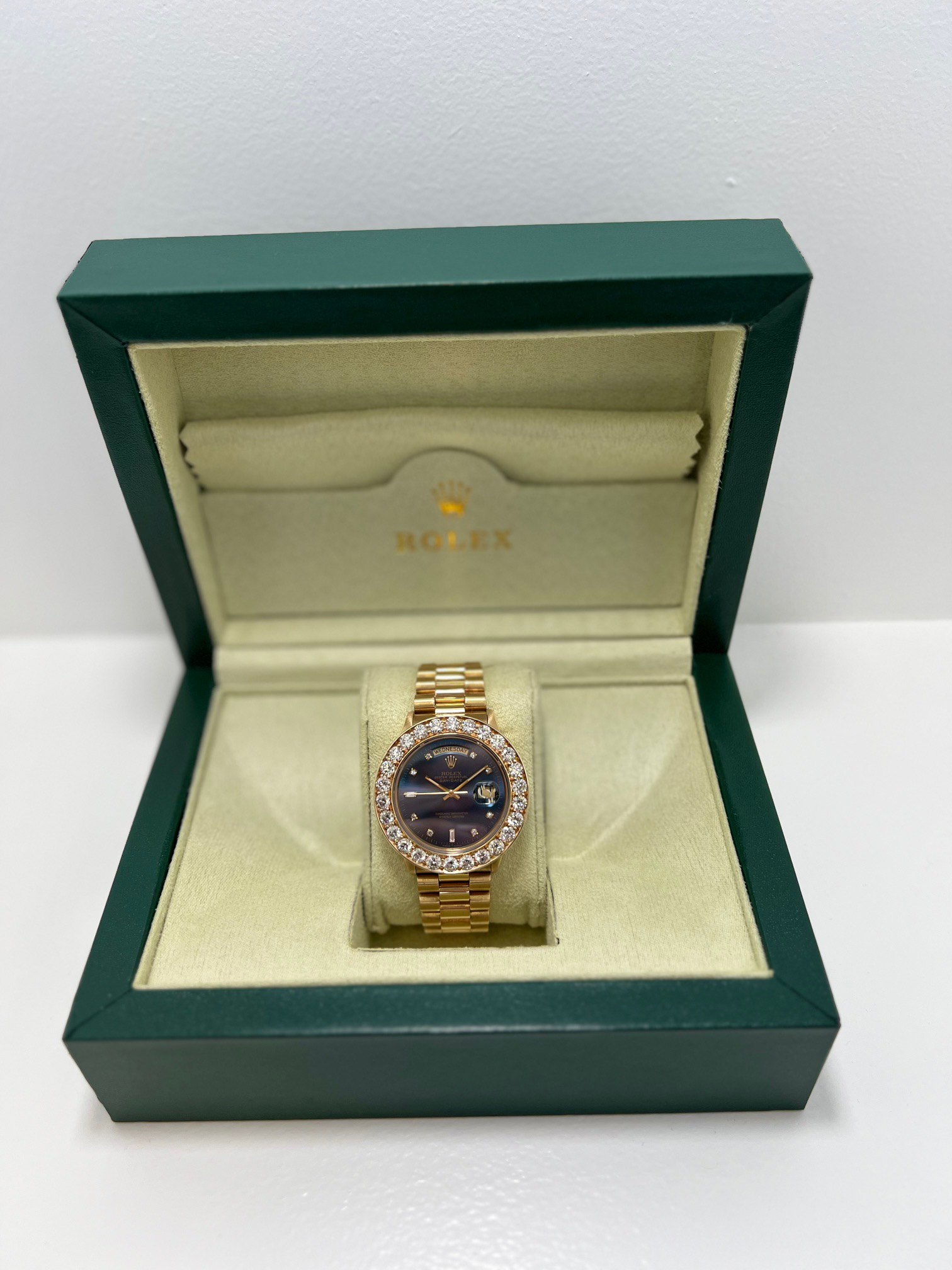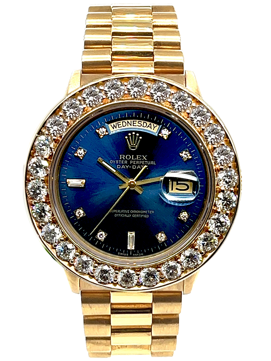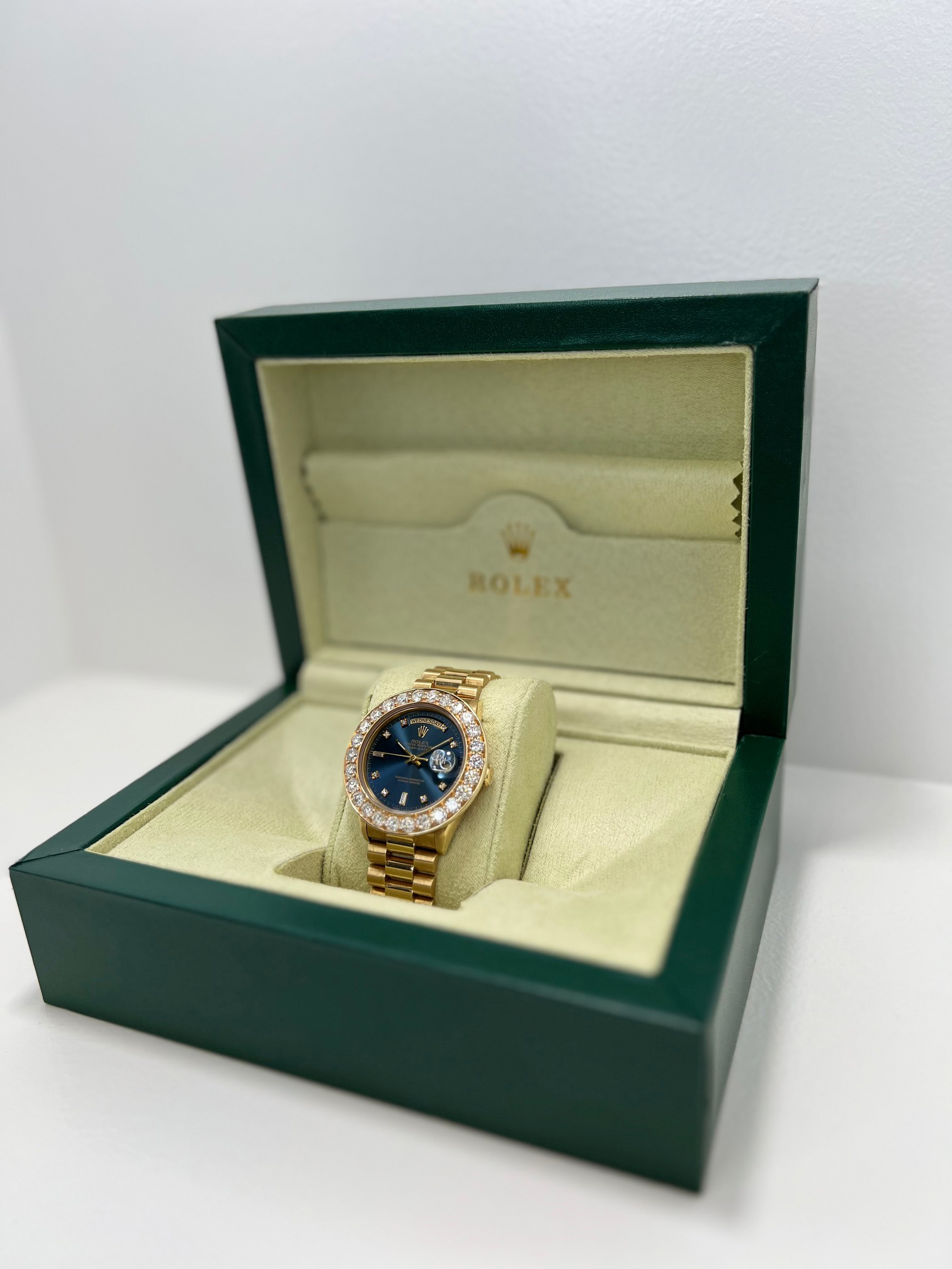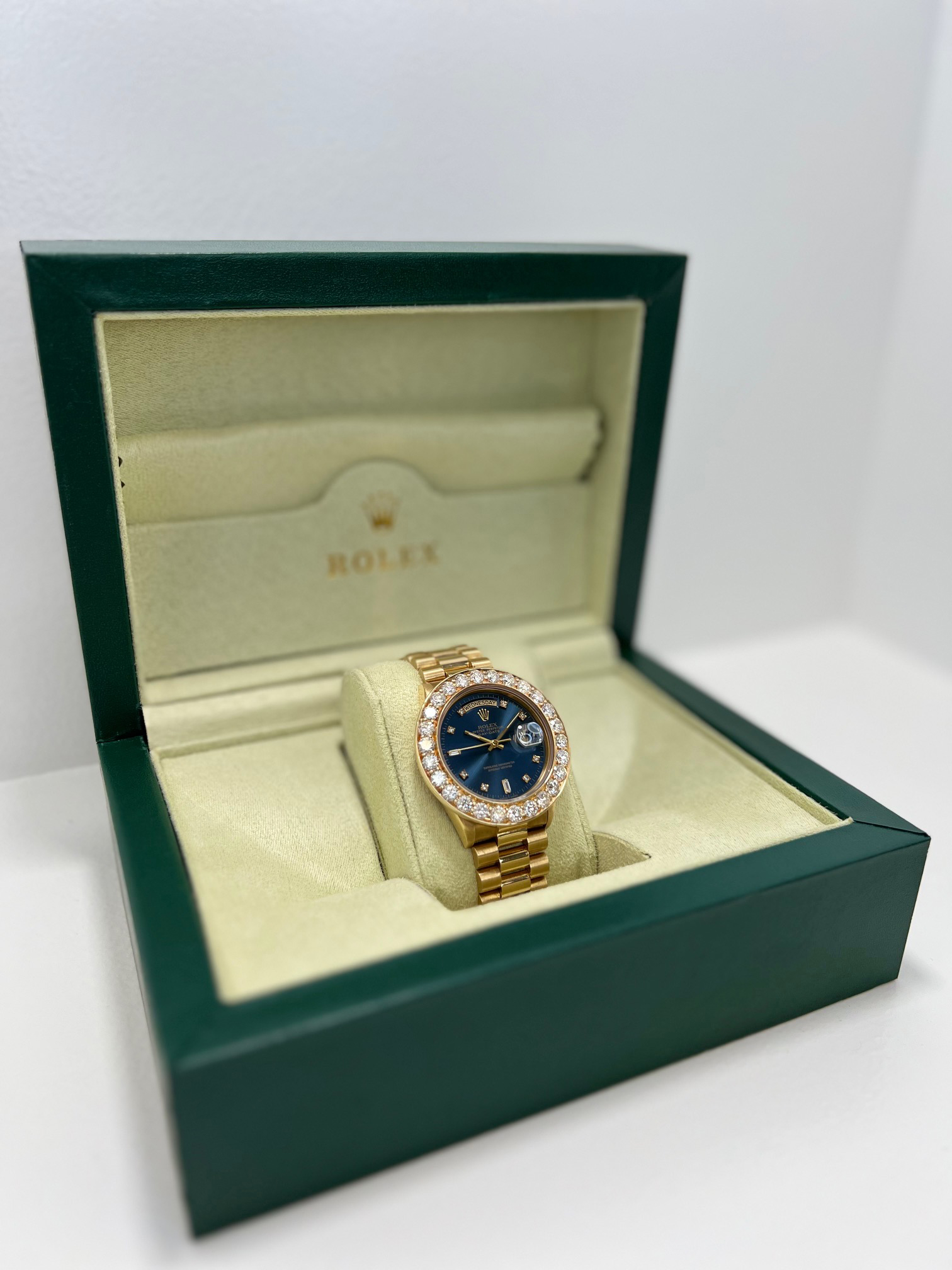 ROLEX PRESIDENT DAY-DATE YELLOW GOLD 7 CARAT DIAMOND BEZEL 18038