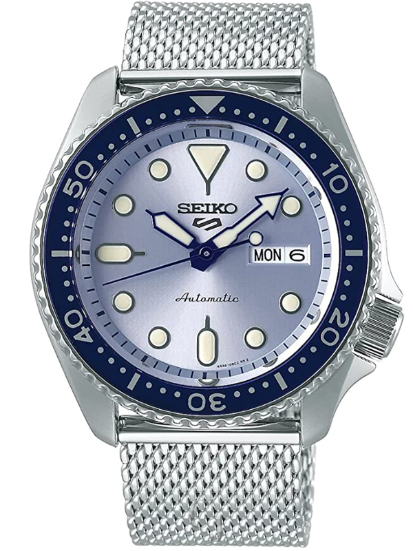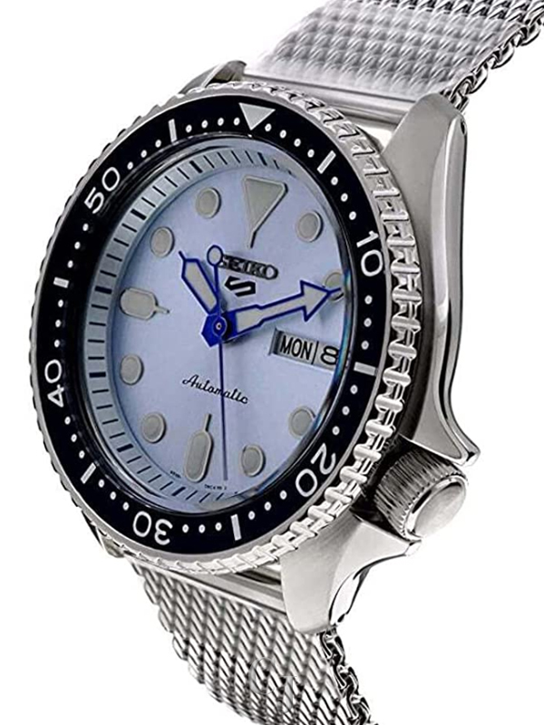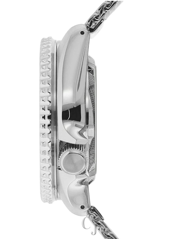Stainless Steel Case, Stainless Steel Mesh Bracelet, Automatic Movement, Caliber: 4R36, 24 Jewels, Hardlex Crystal, Blue Dial, Analog Display, Luminous Hands And Markers, Day And Date Display, Uni Directional Rotating Bezel, Screw Down Crown, See Through Case Back, Deployment Clasp, 100M Water Resistance, Approximate Case Diameter: 42mm, Approximate Case Thickness: 13mm