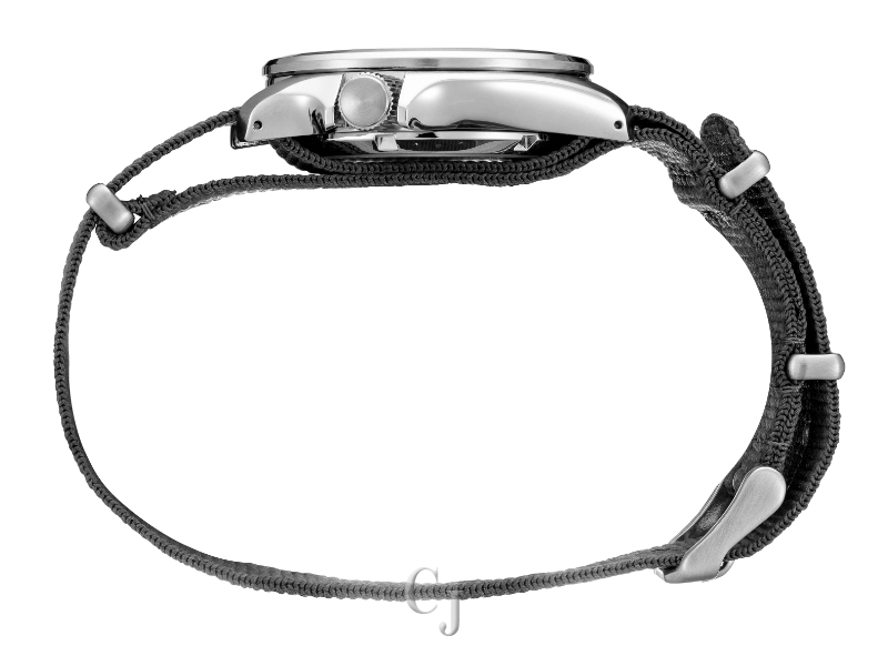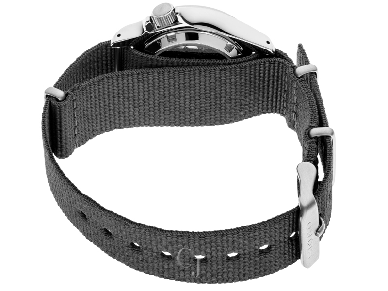 This is a new Seiko automatic 5 Sports watch that features a Seiko 4R36 automatic (self-winding, hand wind, hacks) movement. The grey dial has a day and date display at 3:00 and highly luminous hands and hour markers treated with Lumibrite. The crown is offset at 4:00 on the 40mm diameter stainless steel case. There is also an exhibition window (screw-down) case back for viewing the automatic movement. It comes on a matching grey nylon military-style band. Lug width is 20mm. Water resistance is 100 meters. A manual and Seiko box are included.
