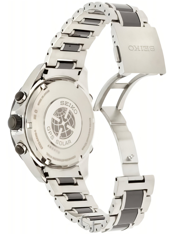 SEIKO ASTRON GPS SOLAR CHRONOGRAPH TWO-TONE STAINLESS STEEL AND BALCK CERAMIC MEN’S WATCH SSE029