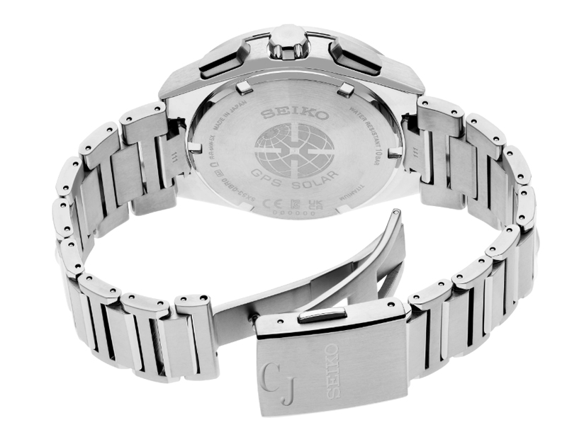 Astron GPS Solar Titanium Collection. With the strong, sleek lines of the Seiko Astron, the world’s first commercially available quartz watch, today’s Astron is designed for a new generation of leaders, embodying the pursuit of excellence in both innovation and style. Combining solid tailoring with the highest degree of accuracy possible in a wristwatch, this exceptional timepiece is GPS controlled for high-speed time and time zone adjustment to 39 time zones, and includes a daylight saving time function, perpetual day and date calendar correct to the year 2100, and am/pm indicators. The unique time transfer function allows wearers to switch between the main dial time and the dual time subdial at the push of a button. To ensure smooth operation, the watch is equipped with a signal reception result indicator and power save function. The solar cell is powered by light energy, with no battery change required. With three-dimensional applied indices and LumiBrite hands and markers for superior visibility, the black dial is framed by a black sapphire crystal bezel providing subtle dimensionality, shine and enhanced scratch-resistance. Crafted of light and durable titanium, with a super-hard coating for added endurance and H-shaped links for smooth wearing comfort, this superb timepiece also offers a sapphire crystal with super-clear coating, secure screwdown caseback and tri-fold push button release clasp. 10 bar, 100M Water Resistant