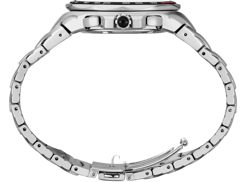 The integrated bracelet is the classic Coutura style, with angular and smooth links, seamlessly meeting the 45.5 mm stainless steel case. Putting the watch on and off is a breeze thanks to a push button deployant clasp. The watch is powered by Seiko’s 7T21 in-house quartz movement, complete with a 5 year battery. A date window is located between the 4 and 5:00 positions.