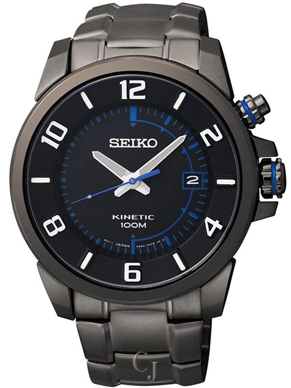 SEIKO KINETIC BLACK ION STAINLESS STEEL BLACK DIAL SKA555