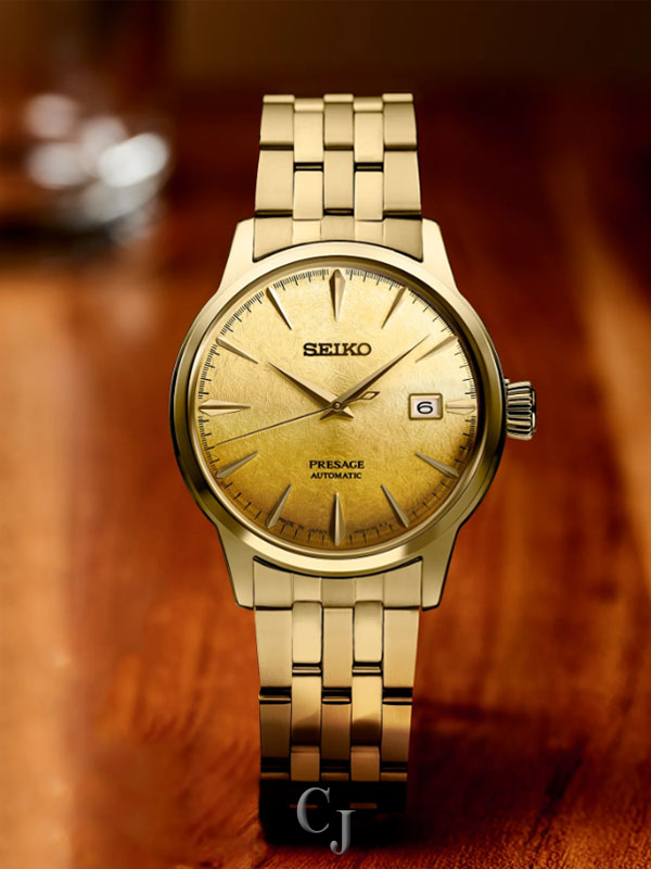 SEIKO PRESAGE COCKTAIL TIME GOLD DIAL MEN’S WATCH SRPK46