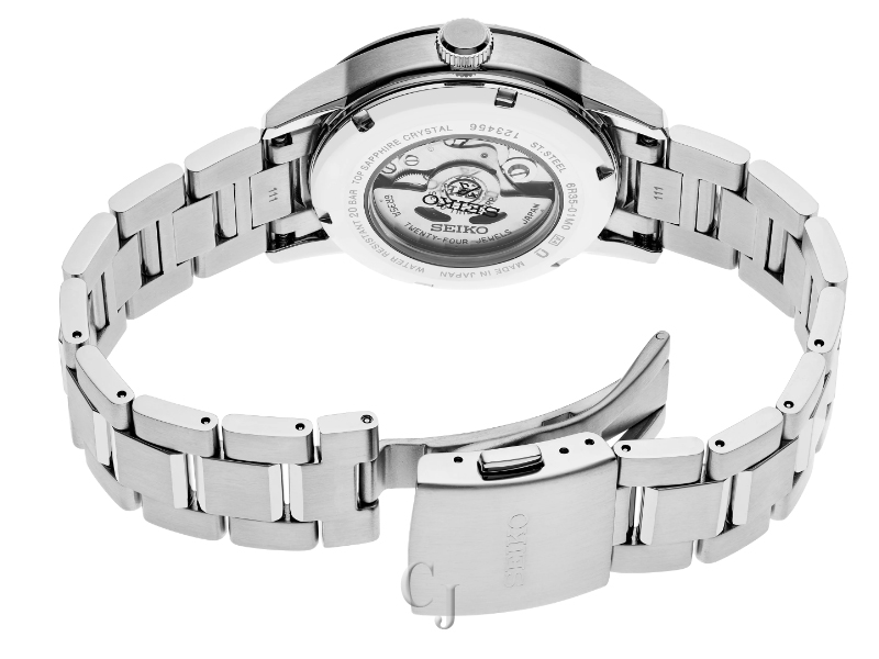 1959 Sports Watch Reinterpretation. The first Seiko sport watch — elegant, yet rugged and superbly functional — the Laurel Alpinist is reimagined in this distinctive watch, designed to celebrate the beginnings of Seiko’s rise to the forefront of high-intensity timekeeping. Styled to fit contemporary tastes while evoking a vintage feel, this exceptional watch is as smooth and refined as the prized original, but far more powerful. With the original’s mountain-shaped markers at 12, 6 and 9 ensuring legibility while referring to its mountaineering inspiration, this versatile design features a cream dial with date calendar and LumiBrite hands and markers, as well a curved sapphire crystal with anti-reflective coating on the inner surface. The 24-jewel automatic movement beats at a frequency of 21,600 vibrations per hour, with a power reserve of approximately 70 hours, and can be wound manually or automatically. Crafted of stainless steel, with screwdown crown and see-through caseback, and tri-fold push button release clasp. 20 bar, 200M Water Resistant