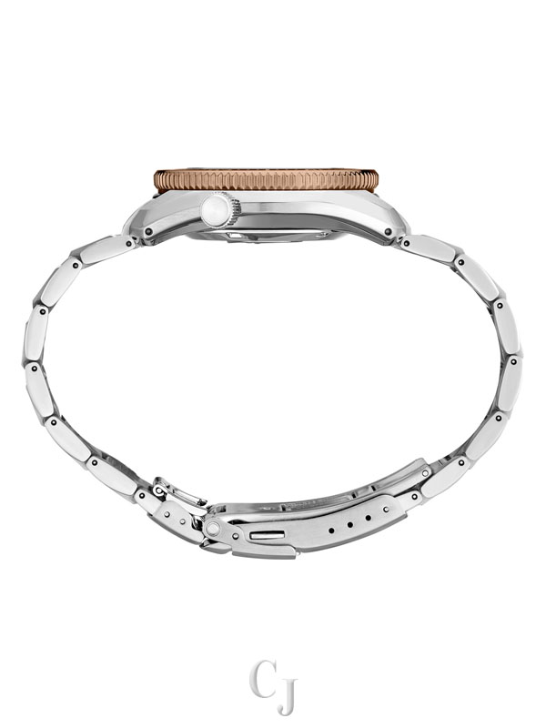 - Bezel: Black uni-directional rotating elapsed timing bezel with rose-gold accents for added elegance
